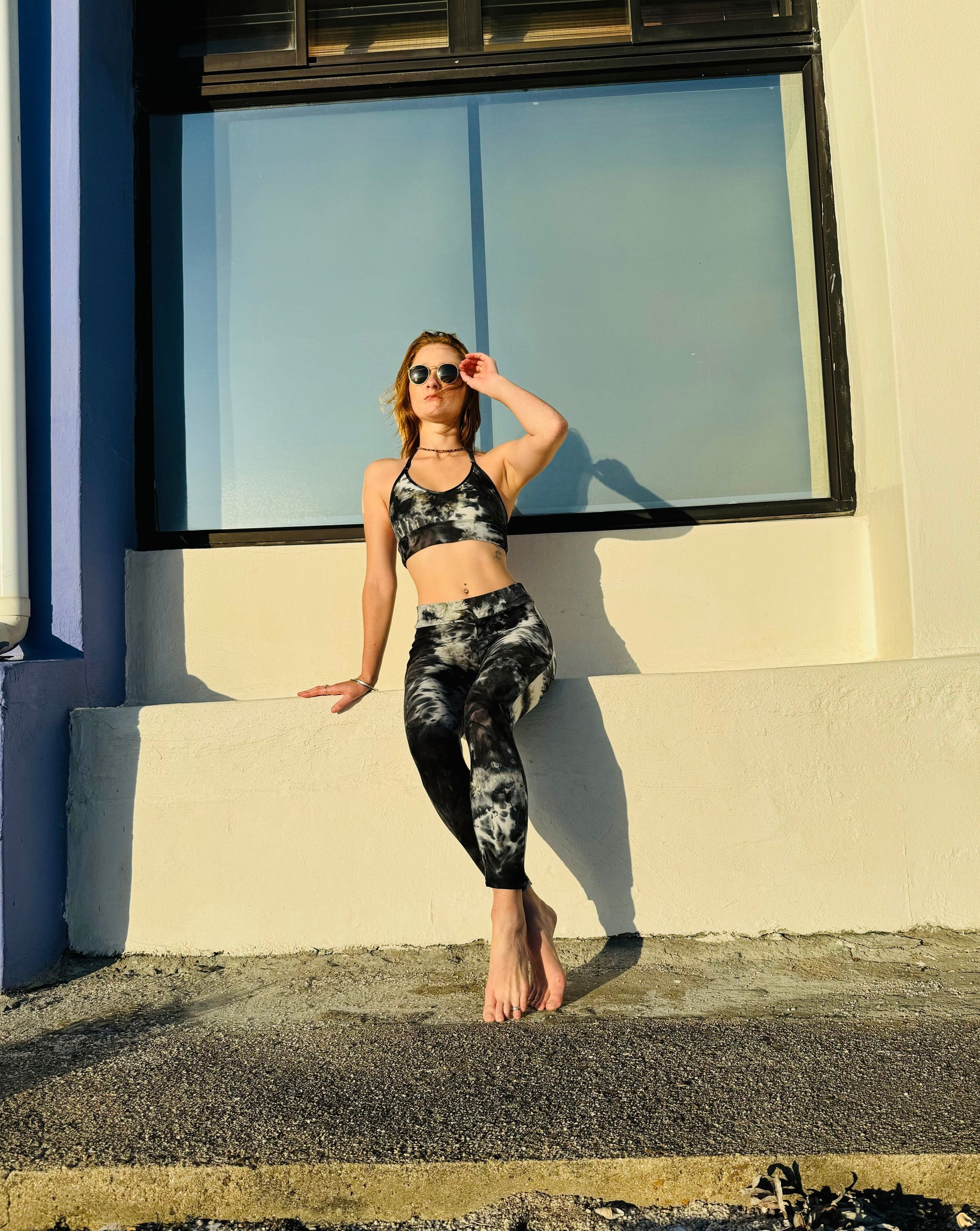 Minimalist Legging and Bra Set (Black Tie Dye)
