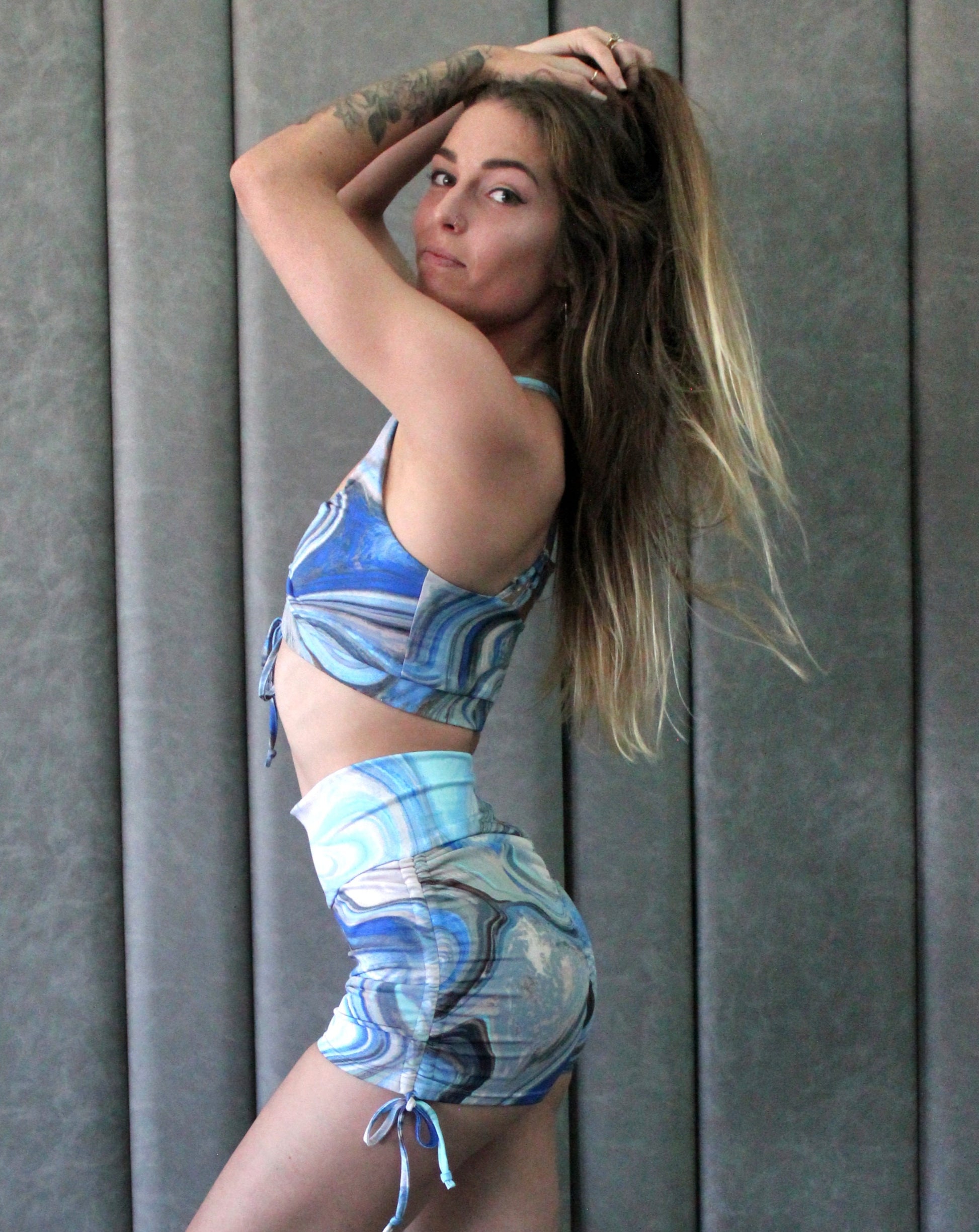 Side drawstring ruching tie detail